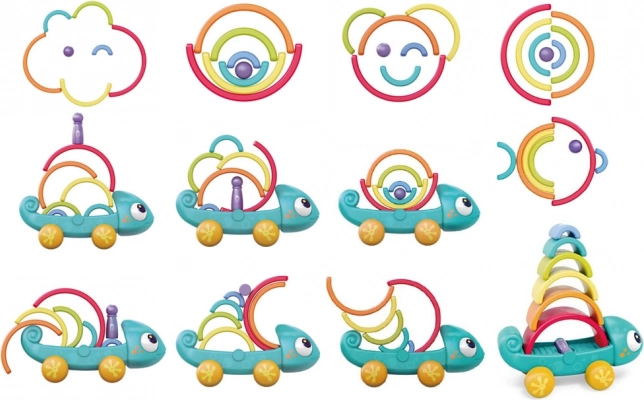 Хамелеонът насърчава игра с дърпане и подреждане, като всеки елемент на взаимодействие укрепва детските умения.