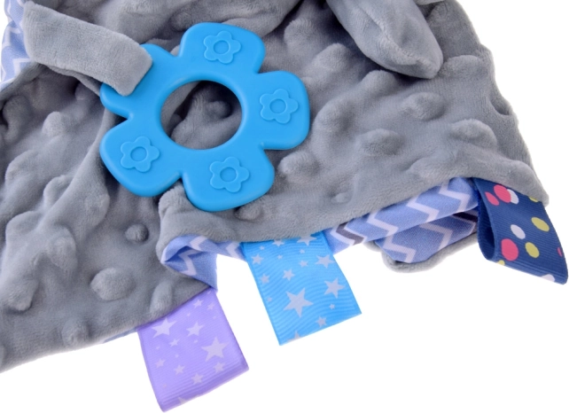 Меко одеялце-гушкащ заек с етикетчета и силиконов гризалка за бебета