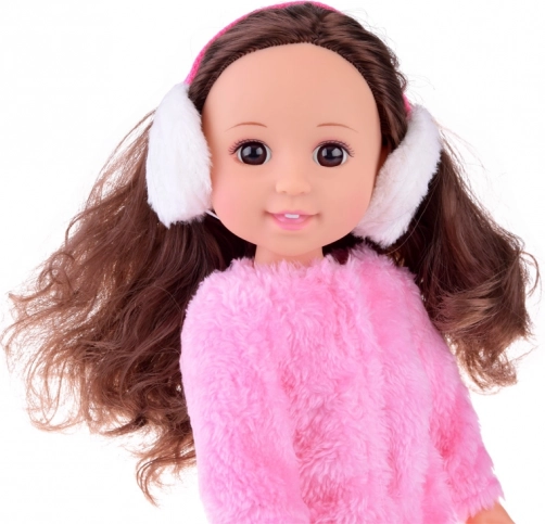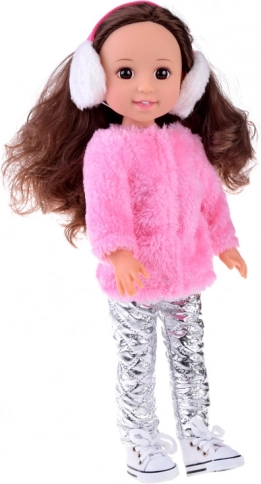 Очарователна кукла с височина 38 см в зимно модно облекло ще зарадва всяка малка дама. Тя има дълга кестенява вълниста коса, която може да се сресва и оформя в прически, и носи меко розово кожухче, бели наушници, сребристи капитонирани панталони и бели обувки с връзки. Благодарение на подвижните крайници е идеална за креативна и въображаема игра.