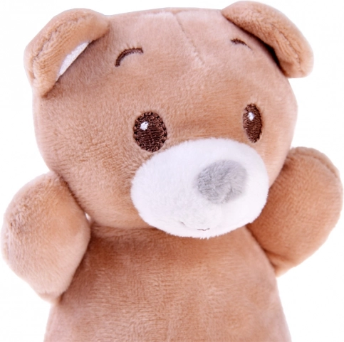 Мечето е покрито с приятен на допир плюш, който приканва към галене и дава на децата чувство за сигурност при заспиване.