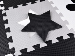 Пеновата игрова подложка от EVA пяна предпазва от студа на пода, омекотява паданията и подпомага развитието на фината и грубата моторика. Неутралният контрастен дизайн със сърчица, звезди и други форми подхожда на всяка детска стая и дневна.