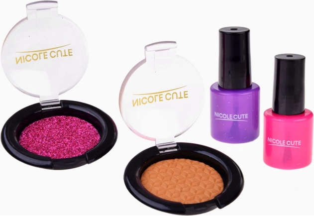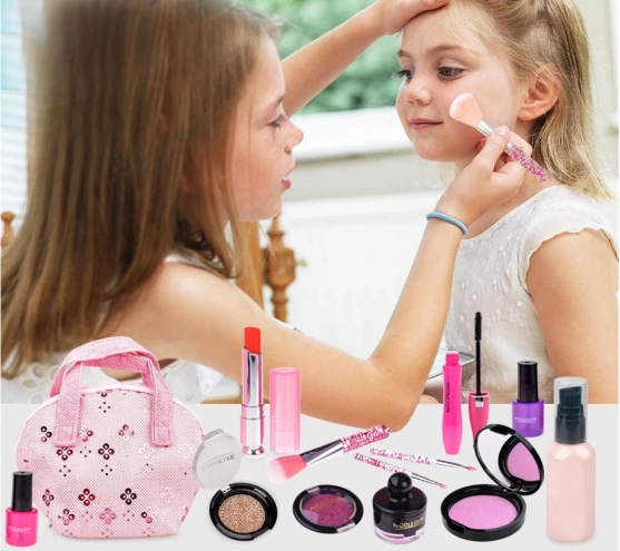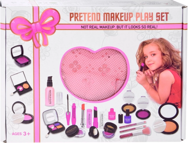 Комплектът включва различни видове грим като сенки за очи, червила и ружове, които са нетоксични и подходящи за нежната детска кожа.