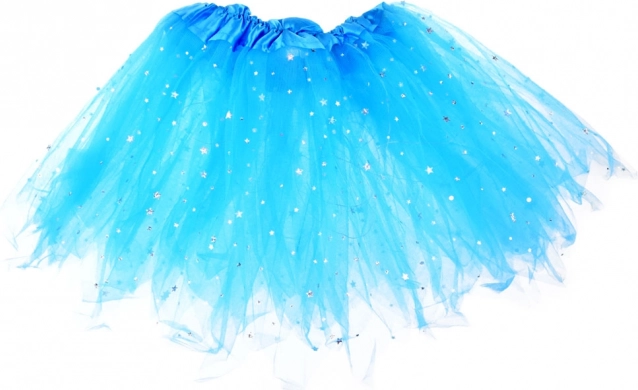 - Светеща синя тюлена пола, покрита с малки сребърни звездички