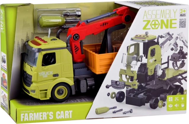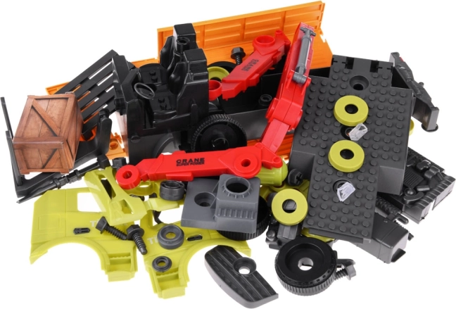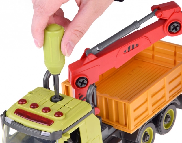 Строителен камион с кран за малки строители предлага функционално въртящо се рамо, отваряема каросерия и фрикционно задвижване за движение напред. С включената отвертка със сменяеми битове превозното средство може да се разглобява и сглобява отново, което развива фината моторика, търпението и креативността. Звукови ефекти като стартиране на двигателя, клаксон и заден ход подсилват реалистичното игрово изживяване.