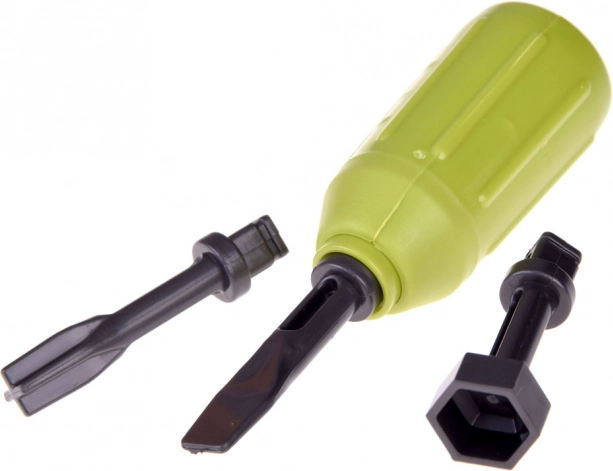 Част от комплекта е ергономична отвертка с три сменяеми бита, благодарение на която децата могат да развият и отново да сглобят превозното средство. Тази активна и подвижна игра подпомага фината и едрата моторика, концентрацията, логическото мислене и сръчността.