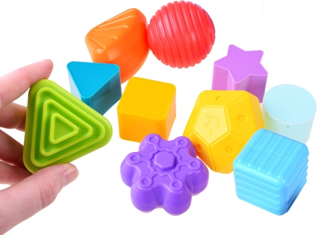 Децата естествено се учат да разпознават форми и цветове благодарение на разнообразния комплект от 10 елемента и профилираните отвори.