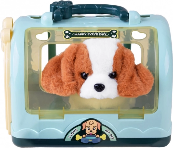 Практична преносима клетка с прозорче и сърцевидни вентилационни отвори позволява на децата да вземат кученцето навсякъде със себе си.