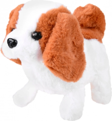 Кученцето върви напред, лае, маха с опашка и при галене по главата издава нежни звуци на кученце – идеално за интерактивна игра.