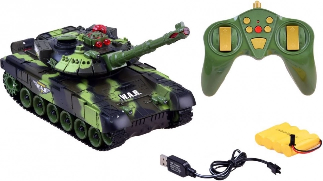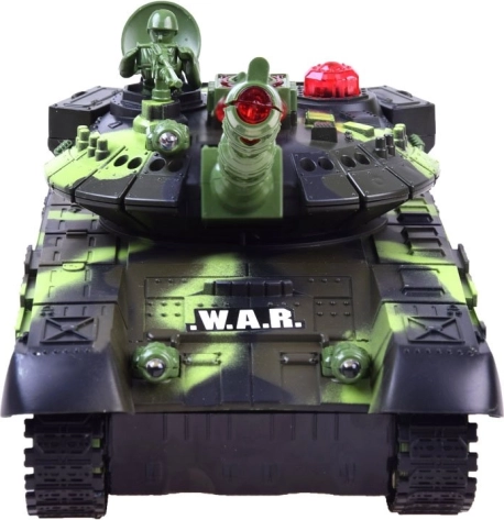 Танкът е оборудван с LED осветление (предни диоди, ефектни светлини на кулата) и звукови ефекти (двигател, изстрел от оръдие, картечница). След три попадения противникът се изключва временно за около 30 секунди и дуелът може да започне отначало. Меките гумени вериги осигуряват добро сцепление и плавно движение по различни повърхности.