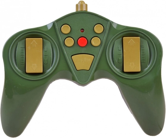 Насладете се на екшън дуели с RC танк в горска камуфлажна окраска. Моделът се движи напред/назад, завърта се на място и има въртяща се кула на 180° във всяка посока (общо 360° покритие). При попадение светлинните индикатори за състоянието на битката се включват/изключват, а танкът симулира реалистичен откат, който подсилва атмосферата на истинско бойно поле.