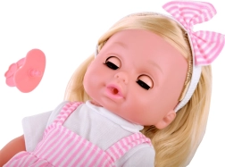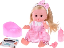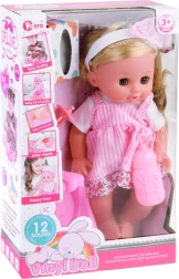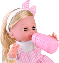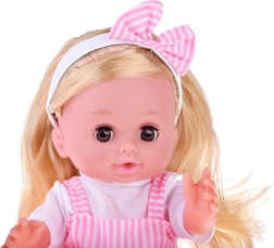 Куклата е облечена в красиви бели и розови роклички с флорален мотив и бяла блузка. Тя е оборудвана с функция за уриниране, което позволява на децата да се учат на грижа за бебе. Осигурява реалистично усещане благодарение на главата, ръцете и краката от твърда гума.