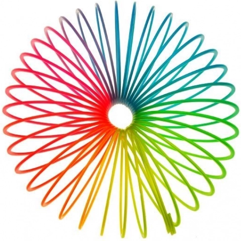 Тази класическа дъгова пружинка впечатлява деца и възрастни. Благодарение на еластичната си спирална конструкция се разтяга гладко, прехвърля се и „слиза“ по стълбите, което създава ефектно цветно зрелище. Подходяща е за моменти на релакс, за фина моторика и креативна игра.