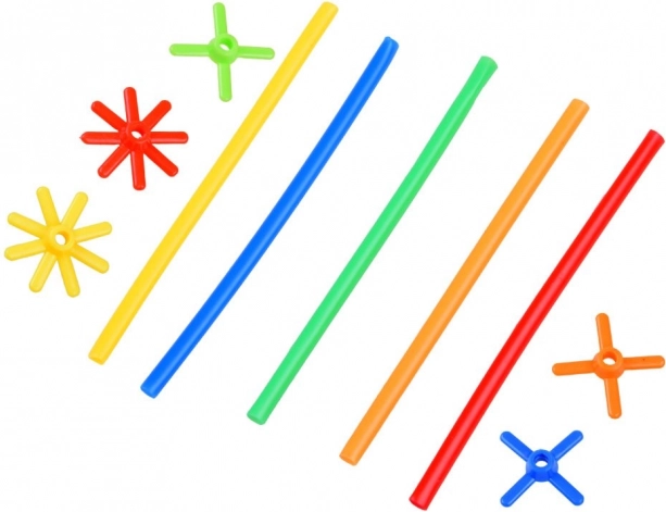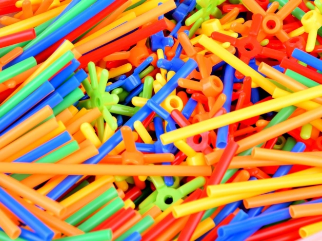 Открийте безкрайните възможности за творчество. Гъвкавите пластмасови сламки в пъстри цветове се свързват лесно с многопосочни съединители и за миг създавате куполи, къщички, мостове и абстрактни 3D обекти. Конструкторът е чудесен за домашна игра и за училищни технически проекти.