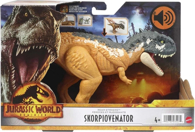Открийте магията на света на Jurassic World Dominion със Скорпиовенатор от Mattel. Този динозавър изпъква с подвижни крайници и реалистични звуци. Благодарение на това можете да пресъздадете сцени от филма или да се потопите в креативна игра.