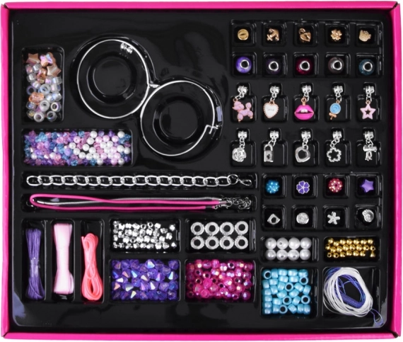 Този комплект предлага всичко необходимо за изработка на ваши собствени стилни гривни и бижута. Позволява на децата да развиват уменията си и да създават персонални подаръци за своите близки.
