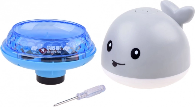 Очарователният воден кит превръща всяко къпане в забавление. След потапяне се активира сам, пръска вода като мини фонтан и е придружен от цветни LED светлинки. Поставен върху платформата, той се раздвижва, движи се в ритъма на весела музика и свети – идеален за ваната, басейна и игриви моменти в банята.
