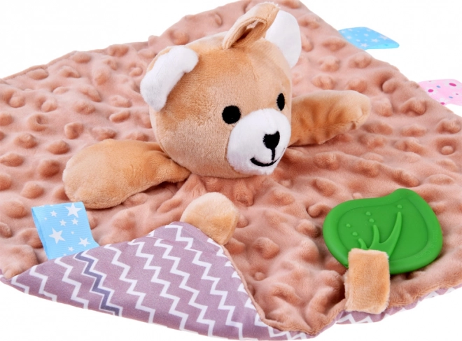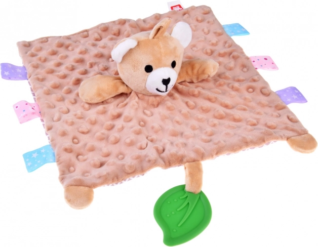Меко одеялце-гушкащ заек с етикетчета и силиконов гризалка за бебета