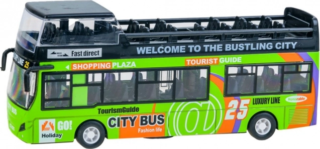 Стилен метален двуетажен автобус, който ще зарадва малките шофьори и пътници. Благодарение на pull-back механизма, отварящите се плъзгащи врати, светлинните ефекти и звуците на двигателя носи реалистично забавление у дома и в движение. Метална каросерия и прецизна изработка осигуряват издръжливост и дълъг живот на играчката.