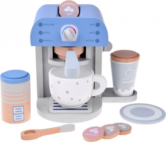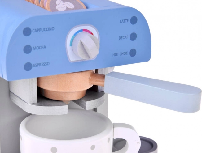 Дървена кафемашина за деца в елегантно синьо е перфектната играчка за всяка детска кухня. Този стилен и качествен комплект включва кафемашина и аксесоари, които осигуряват забавна и поучителна игра.