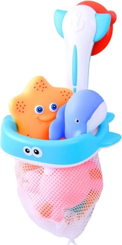 Превърнете къпането във весела забава! Този богат воден комплект включва мрежичка с вендуза, лодички, подреждащи се чашки, разгъващи се топки и плаващи гумени животинки. Благодарение на пъстрите цветове и разнообразните активности насърчава фината моторика, координацията око-ръка и креативната игра във вода. Практичната вендуза позволява да превърнете мрежичката в органайзер за играчки, така че банята да е винаги подредена.