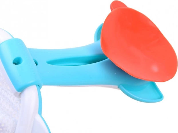 Мрежичката се закрепва лесно върху гладка повърхност и се превръща в кош за играчки. Детето може да тренира „стрелба в кош“ и да свиква да прибира след къпане.