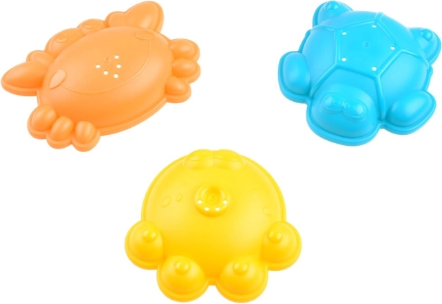 Три формички с мотиви на рак, костенурка и октопод осигуряват много забавление. Всяка има отвори за лесно освобождаване на пясъка.