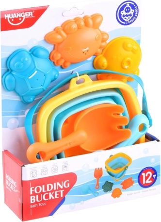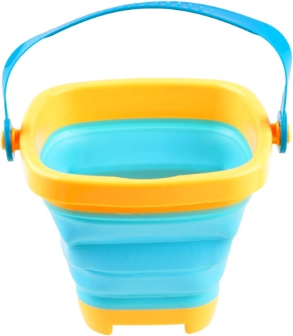 Благодарение на използването на гъвкав силикон по стените и по-твърда пластмаса на дъното и ръбовете кофата може лесно да се сгъва след игра. Занимa заема по-малко място и се пренася и съхранява лесно. Формичките имат малки отвори, така че могат да се използват и като чашки за вода.