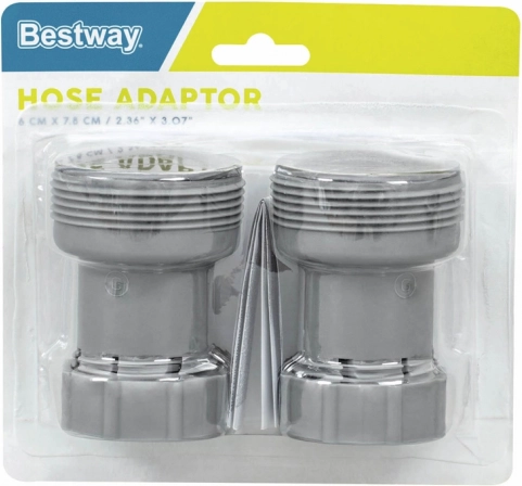 Адаптери за маркуч на басейн с диаметър 38 мм, които свързват вентили към филтърни помпи Bestway с диаметър 32 мм. Изработени от висококачествен, издръжлив и корозионно устойчив материал.