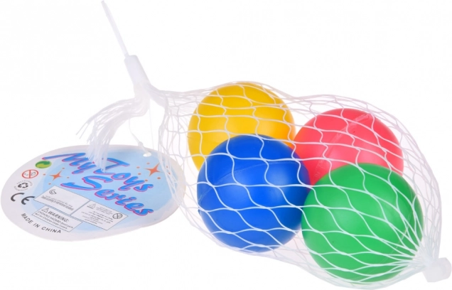 - Комплект 4 бр.: червена, жълта, синя и зелена топка в практична мрежа.