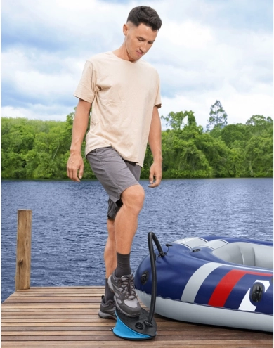 Лесно превключвате между режим INFLATE/DEFLATE, така че не само допълвате въздух, но и бързо го изпускате. Помпата може да се управлява с крак или ръка – крачната употреба е удобна и бърза, което ще оцените на плажа, край езеро или в градината.