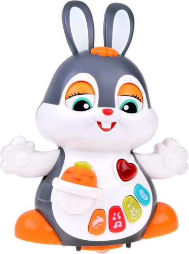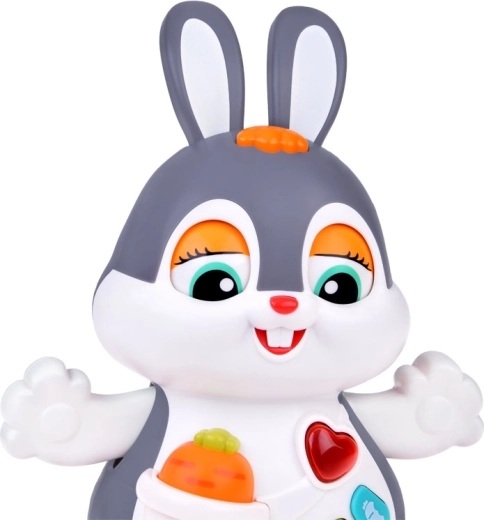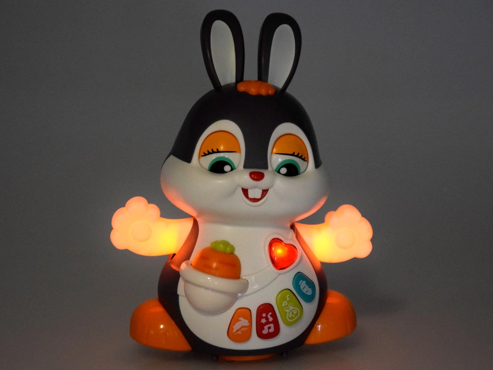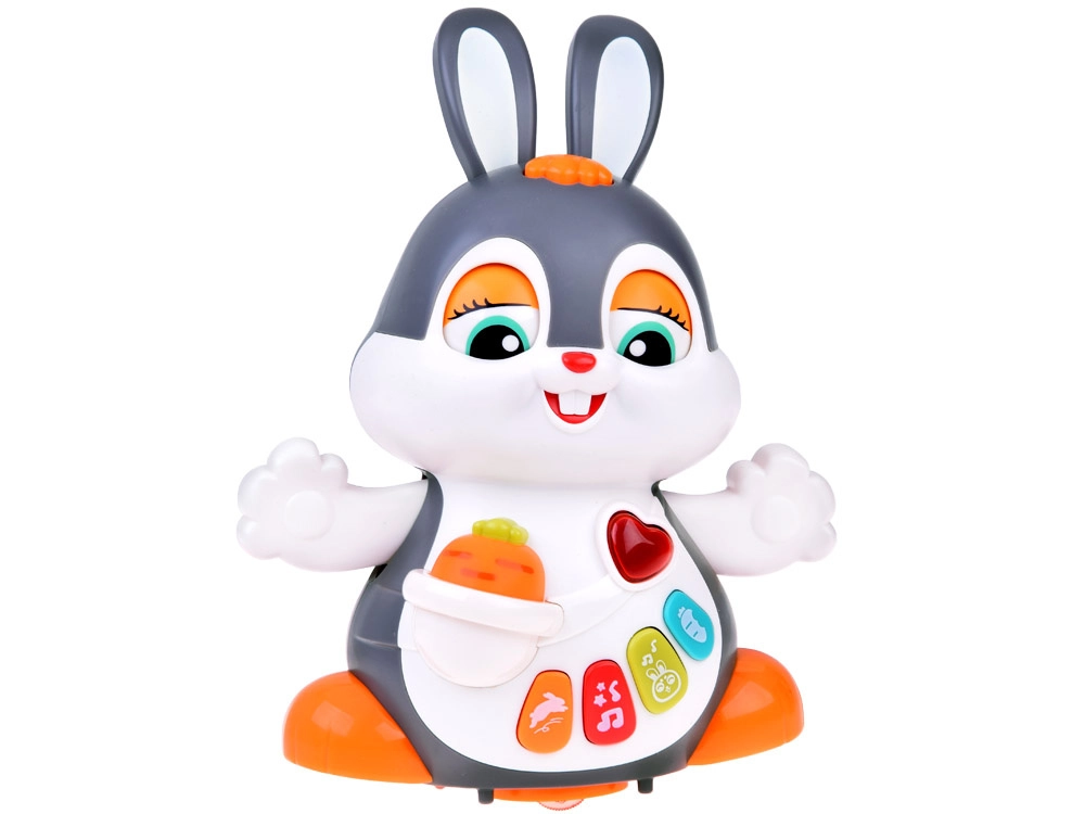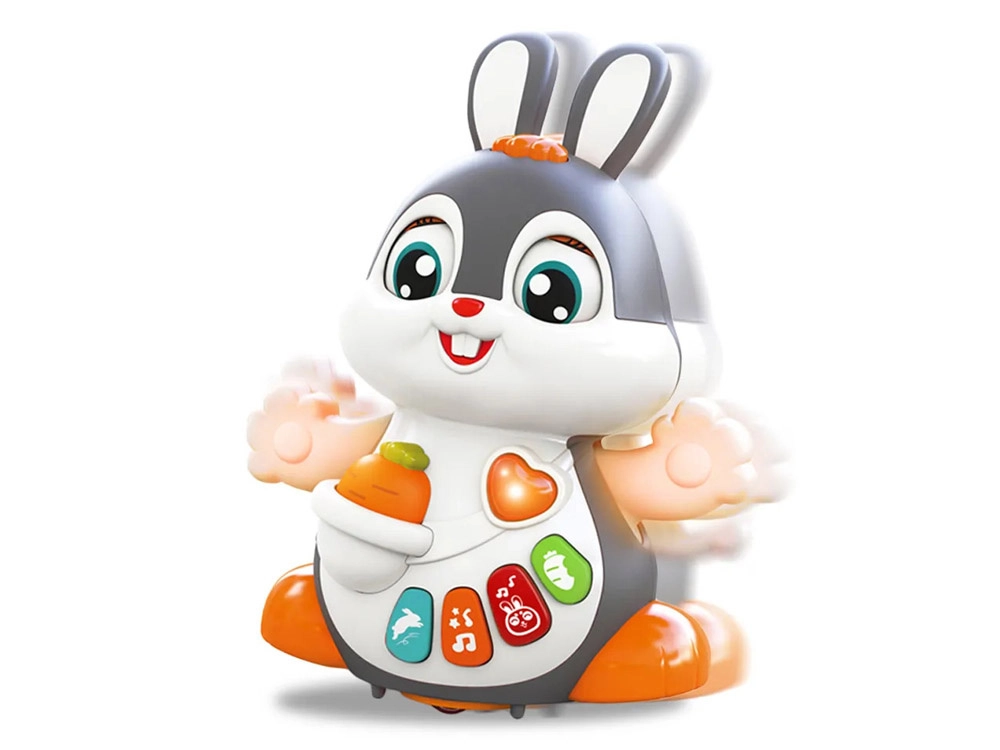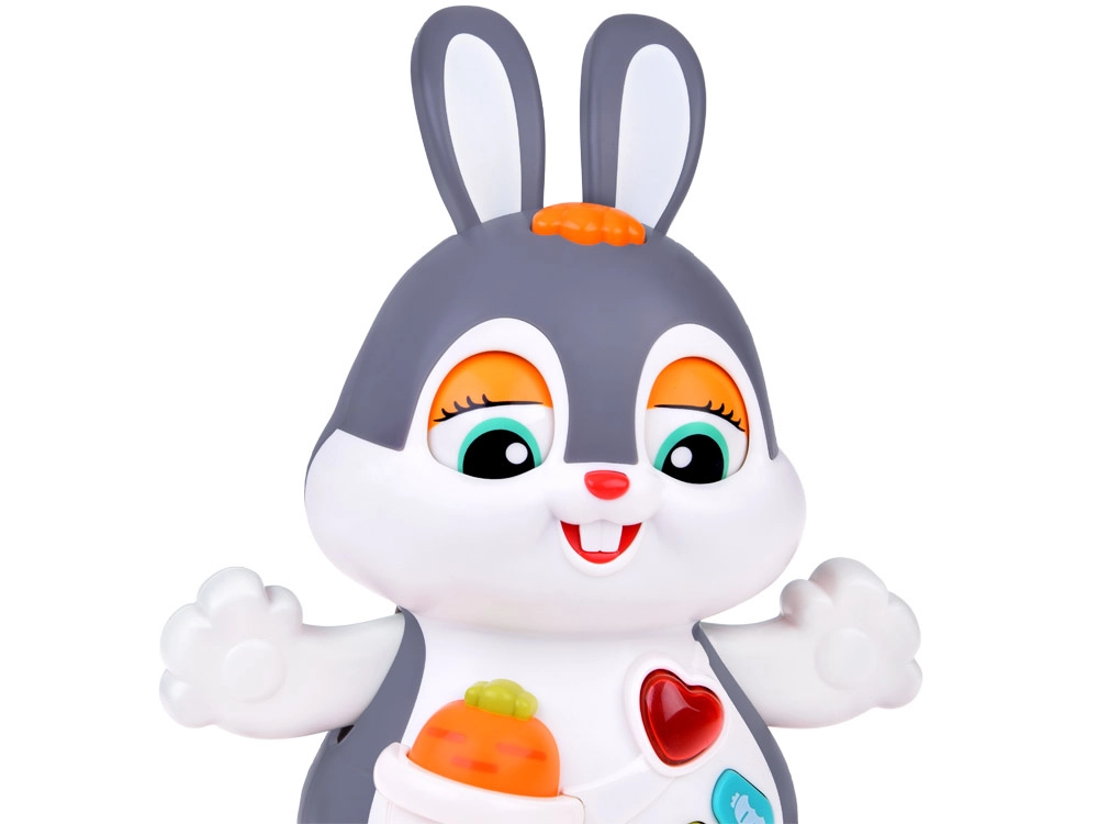 Интерактивното танцуващо зайче е чудесен спътник за първите стъпки и пълзене. Играчката може да се движи, да мига с очи и да свети в ритъма на музиката. Децата ще бъдат заинтригувани от цветните бутони с различни функции: мелодии, биене на сърце, звуци на подскачане и хрупане на морков – всичко това придружено от светлинни ефекти.