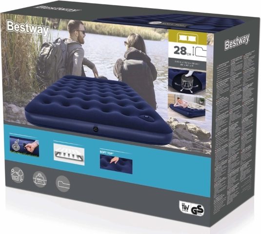 Практичен и удобен надуваем дюшек за двама с размери 203 × 152 × 28 см, който осигурява спокоен сън у дома и по време на път. Благодарение на вградената крачна помпа лесно се надува без електричество, конструкцията coil‑beam се грижи за стабилността, а интегрираната възглавница и меката винилова повърхност повишават комфорта. Двупосочният вентил улеснява бързото надуване и изпускане.