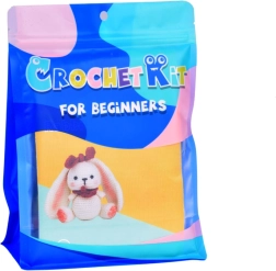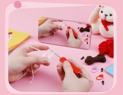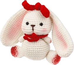 Този оригинален DIY комплект ви позволява лесно да изплетете своя собствена играчка – бяло зайче с червени детайли. Благодарение на ясните инструкции с илюстрации и QR код към видео, дори напълно начинаещи ще се справят с процеса. Готовото зайче е чудесен подарък и мила декорация за детската стая.