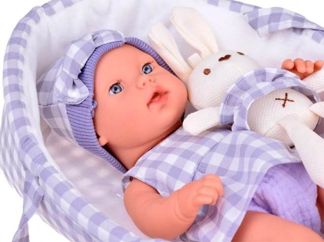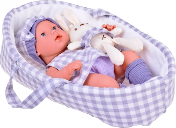 Тази детайлно изработена бебешка кукла насърчава креативната игра, развитието на фантазията и емпатичните умения. Фините черти на лицето и реалистичните пропорции засилват усещането за грижа за истинско бебе. Съчетаващата се кошничка с дръжки улеснява пренасянето и съхранението на куклата у дома и по време на път.