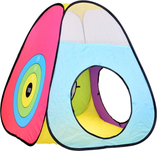 Триъгълната палатка с цветна мишена и отвори за уцелване развива точността и моториката. Чудесно състезателно забавление за малки стрелци.