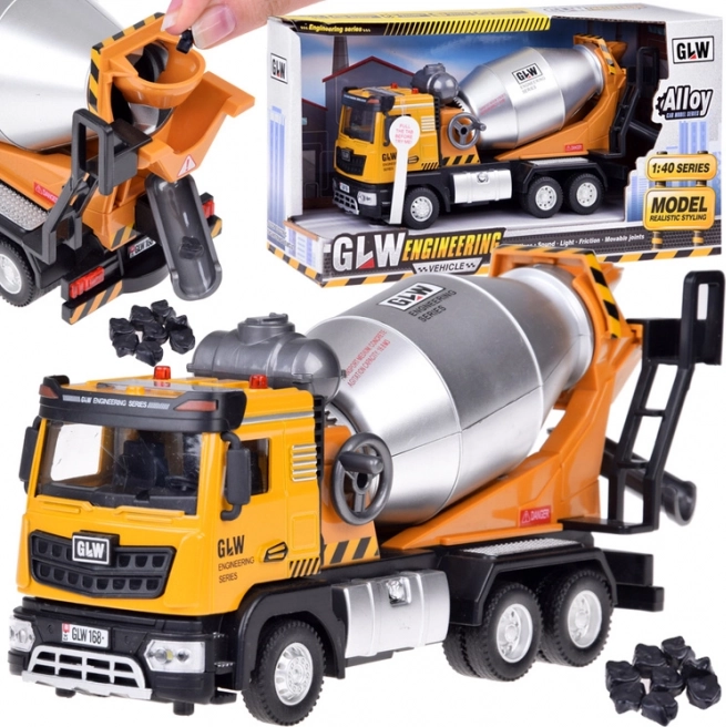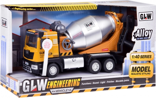 Бетоновозът от серията GLW Engineering е перфектна играчка за малките строители. Този модел комбинира реалистичен дизайн, звукови и светлинни ефекти и подвижни части за интерактивна и забавна игра.