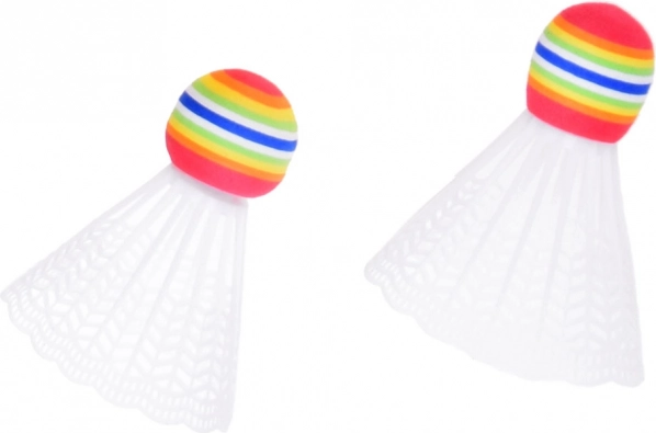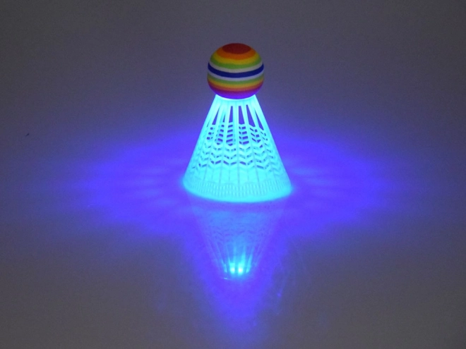 Освен това в комплекта има двойка бели перца с дъгово оцветени върхове. Тези върхове са по-големи от стандартните, което улеснява отскока и плавността на играта. Едното от тях е оборудвано и с LED осветление, реагиращо на допир, идеално за вечерна игра!