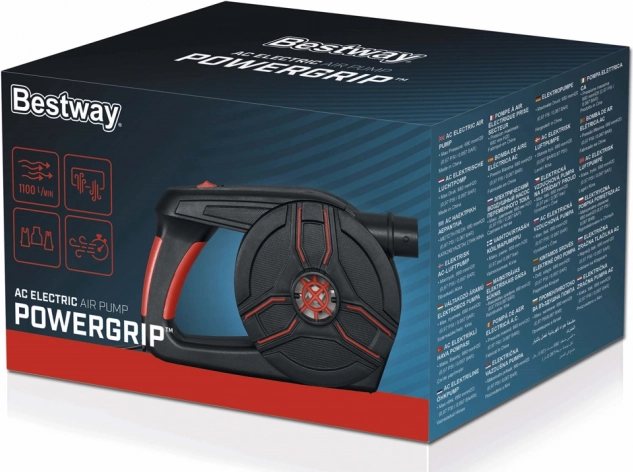 Електрическата помпа Bestway PowerGrip е мощен инструмент с универсални адаптери, подходящ за напомпване на водни дюшеци, играчки, къмпинг постелки, лодки и други предмети. Благодарение на големия въздушен дебит от 1100 л/мин осигурява бързо и лесно напомпване.