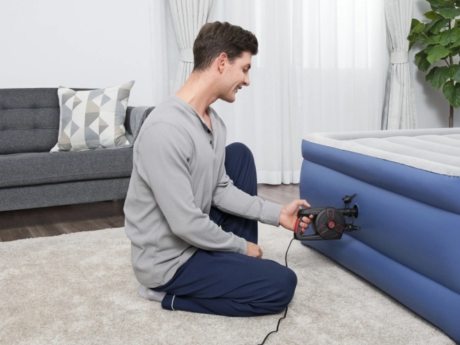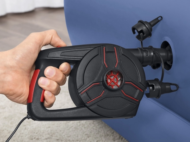 Тази електрическа помпа от марката Bestway комбинира силна мощност с универсална съвместимост. Оборудвана е с три универсални вентила, което я прави идеална за различни надуваеми предмети, като дюшеци, басейнови играчки и други. С въздушен дебит 1100 л/мин помпата гарантира бързо напомпване и може лесно да се превключи в режим на източване за по-лесно съхранение. Помпата се захранва от домашен контакт 220 V и достига налягане 0,97 PSI, което я прави подходяща и за по-големи предмети, изискващи по-високо налягане.
