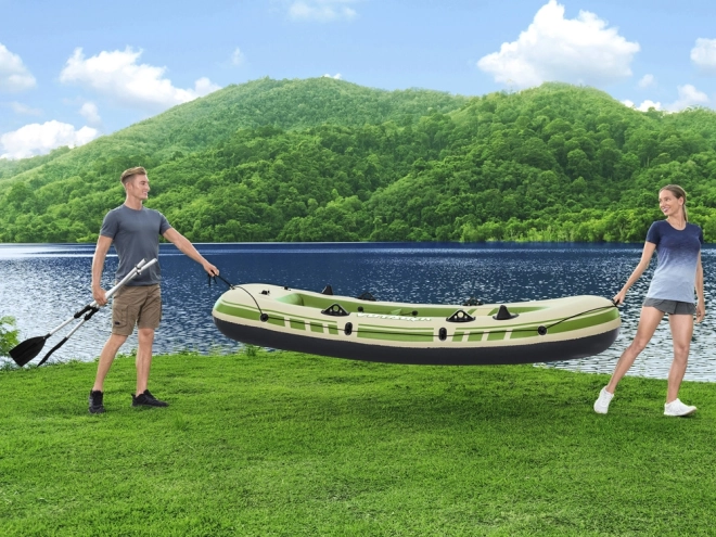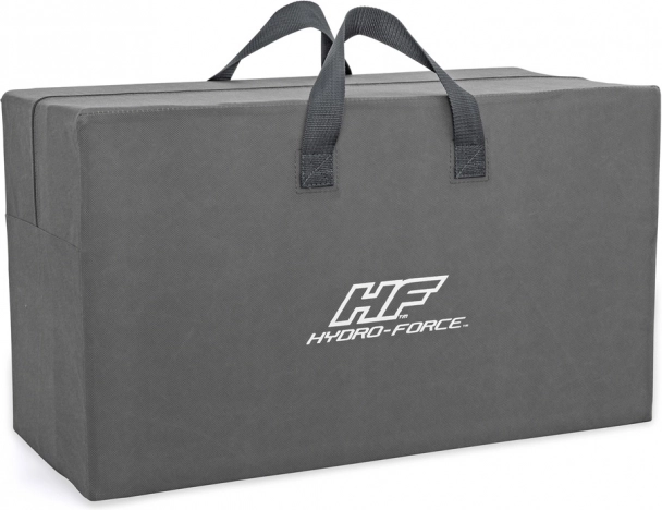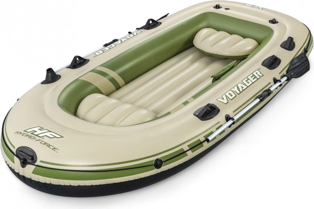 Лодката е оборудвана с надуваеми възглавници на седалките и надуваем под, които допринасят за удобството по време на плаване. След приключване на приключенията лесно я навивате и прибирате в издръжливата чанта. Максималното натоварване е до 360 кг, което гарантира безопасност за всички пътници.