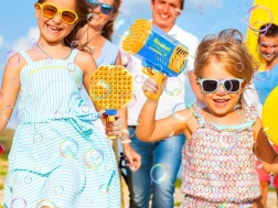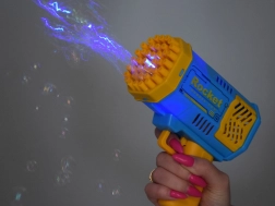 Пистолетът за балончета позволява пускането на до 40 балончета едновременно, което е забавление за деца и възрастни.