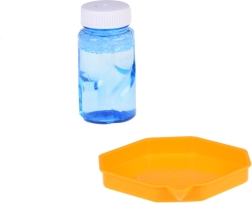 Пистолетът за балончета е уникална машина за създаване на балончета, защото няма вграден резервоар за течност. Как тогава да създадем тези прекрасни, дъгови сферички, които се носят към небето? Това е лесно! Просто изсипете малко количество от течността, включена в комплекта, в розовата плитка купичка и потопете предната част на пистолета. След това прицелете и натиснете спусъка. Пред вас ще се появи възхитителна гледка! От 40-те отвора ще полетят кръгли, блестящи форми, които ще предизвикат радостни възгласи у много деца. А възрастните също ще останат силно впечатлени.