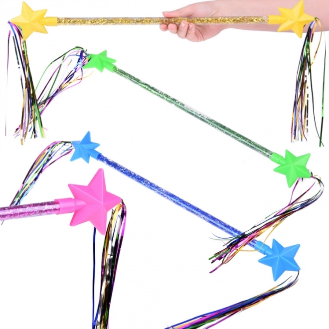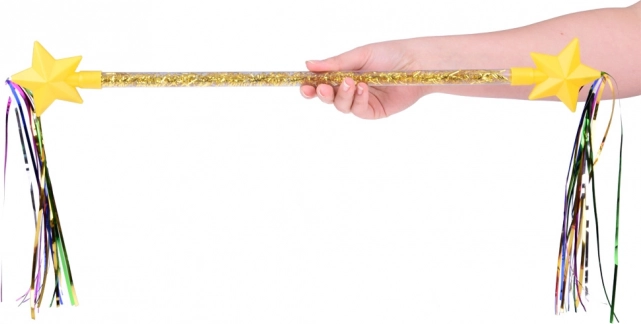 Тази гимнастическа пръчица е перфектният инструмент за всяка малка гимнастичка. Тя е изработена от лека пластмаса с вътрешни украси, които придават на движенията вълшебна елегантност. В двата края има звездички с дъгови ленти, които при танц създават магически ефект.