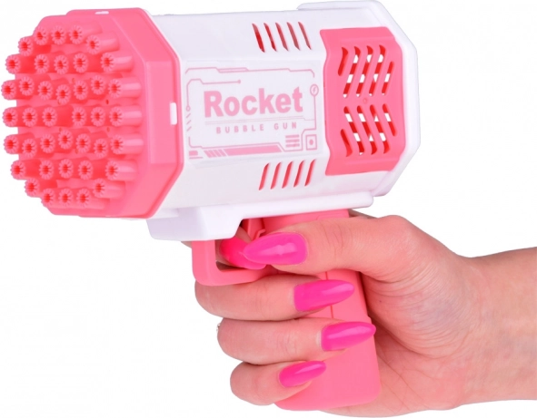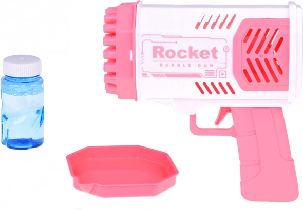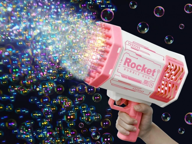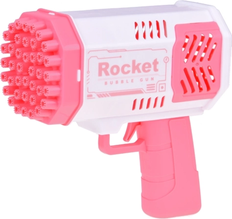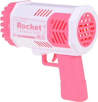 Този уникален пистолет за сапунени мехурчета не изисква вграден резервоар за течност. Как да създадете красиви дъгови мехурчета? Просто налейте малко от включената течност в розовата купичка и потопете в нея предната част на пистолета. След това се прицелете и натиснете спусъка. Пред вас ще се появи невероятна гледка – от 40 отвора излитат кръгли, блестящи фигури, пълни с цветове, които ще зарадват всеки зрител!