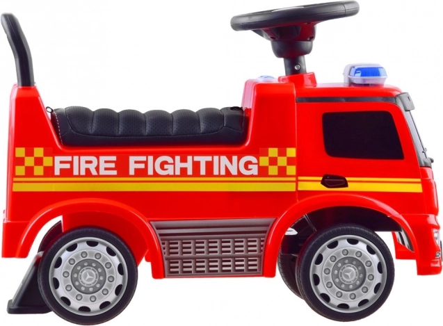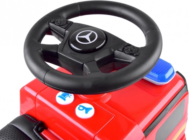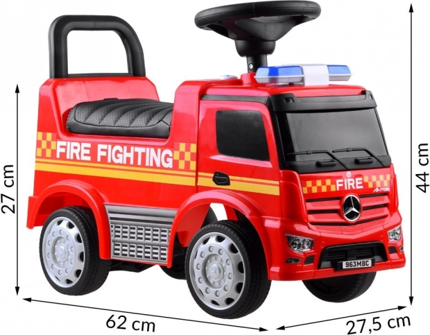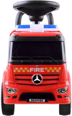 Осигурете на своето дете забавление и безопасност с тази лицензирана количка за яздене Mercedes във формата на пожарна кола. Изработена от висококачествена пластмаса, тя предлага изключителна издръжливост и наситени цветове. Благодарение на удобната седалка с облегалка возенето е не само комфортно, но и безопасно. Блокиращ механизъм предотвратява преобръщане назад.