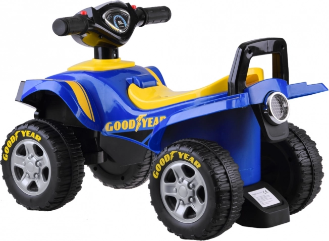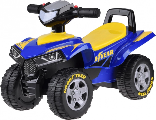 Колелото за бутане Goodyear Quad гарантира безопасност и радост от карането за деца от 18 месеца. Благодарение на лицензирания дизайн на Goodyear, това колело за бутане предлага не само стил, но и издръжливост. Моделът разполага с: