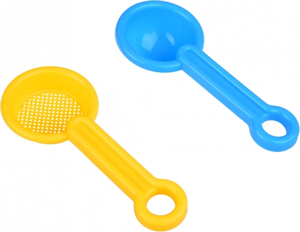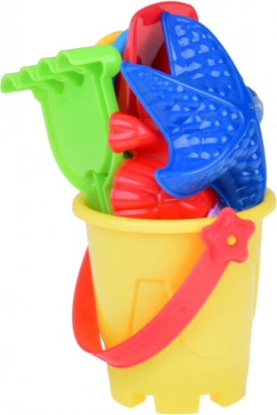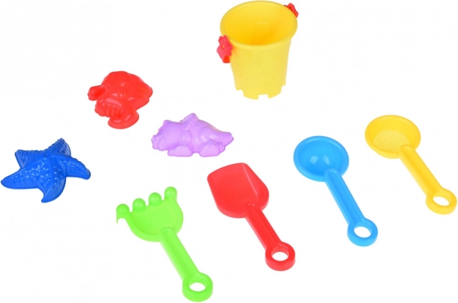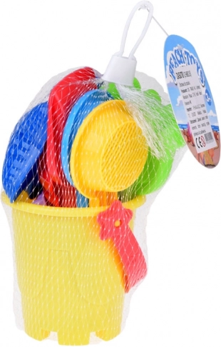 Този универсален плажен комплект предлага на децата безкрайни възможности за забавление – копаене, гребане, пресяване и създаване на пясъчни постройки. Всеки елемент е в различен цвят, което стимулира визуалното възприятие и кани към игра. Компактната изработка е удобна за екскурзии, почивки и площадки; лесно се побира в чанта или раница.