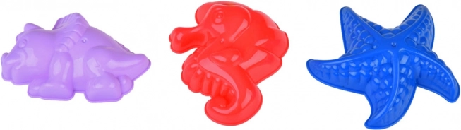 Формичките с форма на динозавър, морско конче и морска звезда обогатяват всяка пясъчна постройка и подпомагат детското въображение.