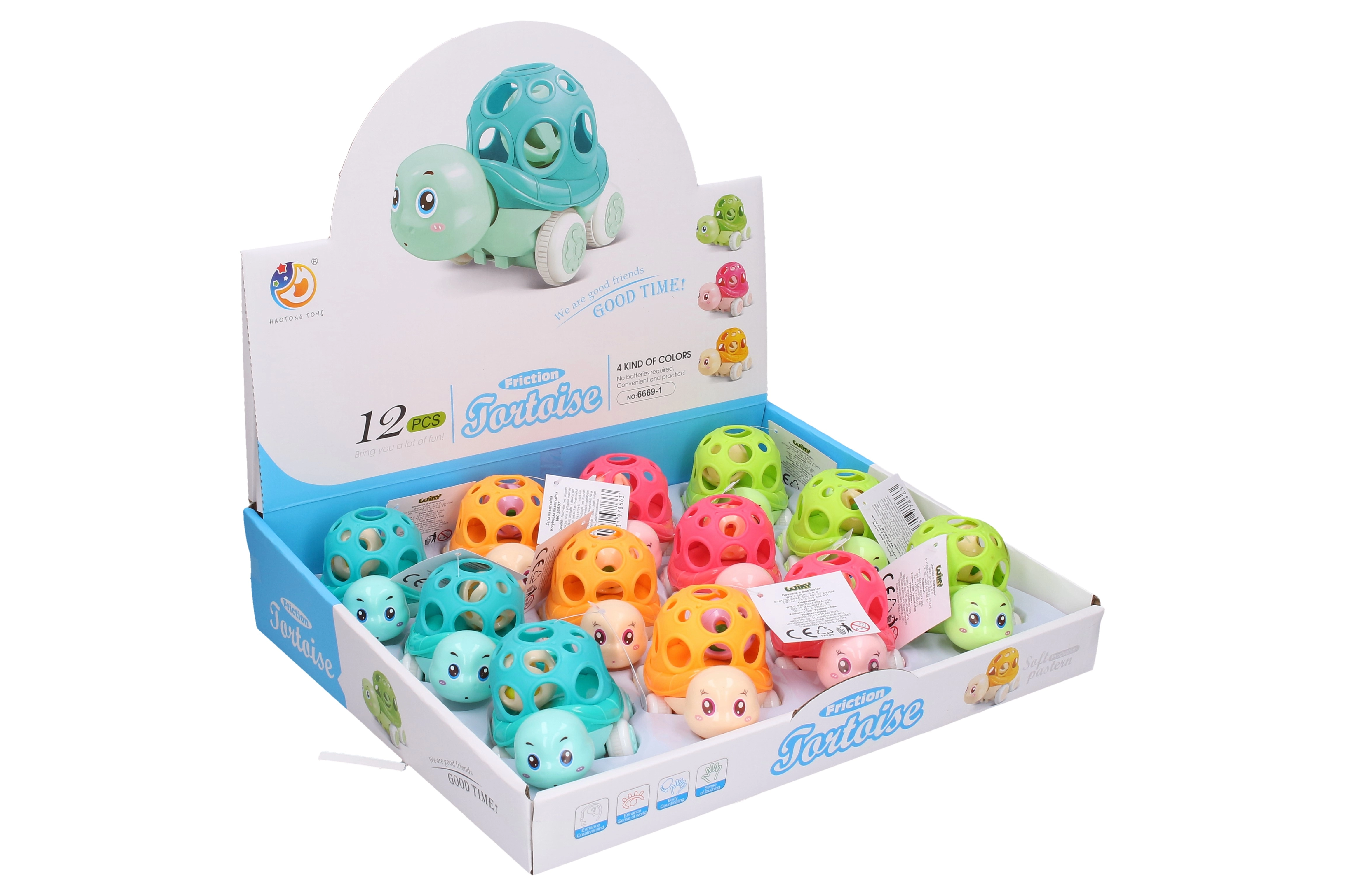 Четири цветови варианта, които ще очароват децата: син, оранжев, зелен и розов. Костенурката е изработена от устойчив пластмасов материал, което гарантира дълъг живот. Благодарение на инерционното задвижване костенурката се движи лесно по пода, осигурявайки на децата още повече забавление.