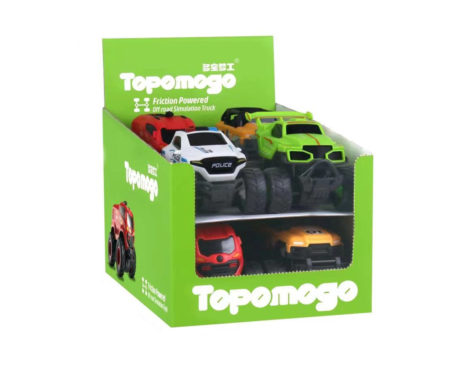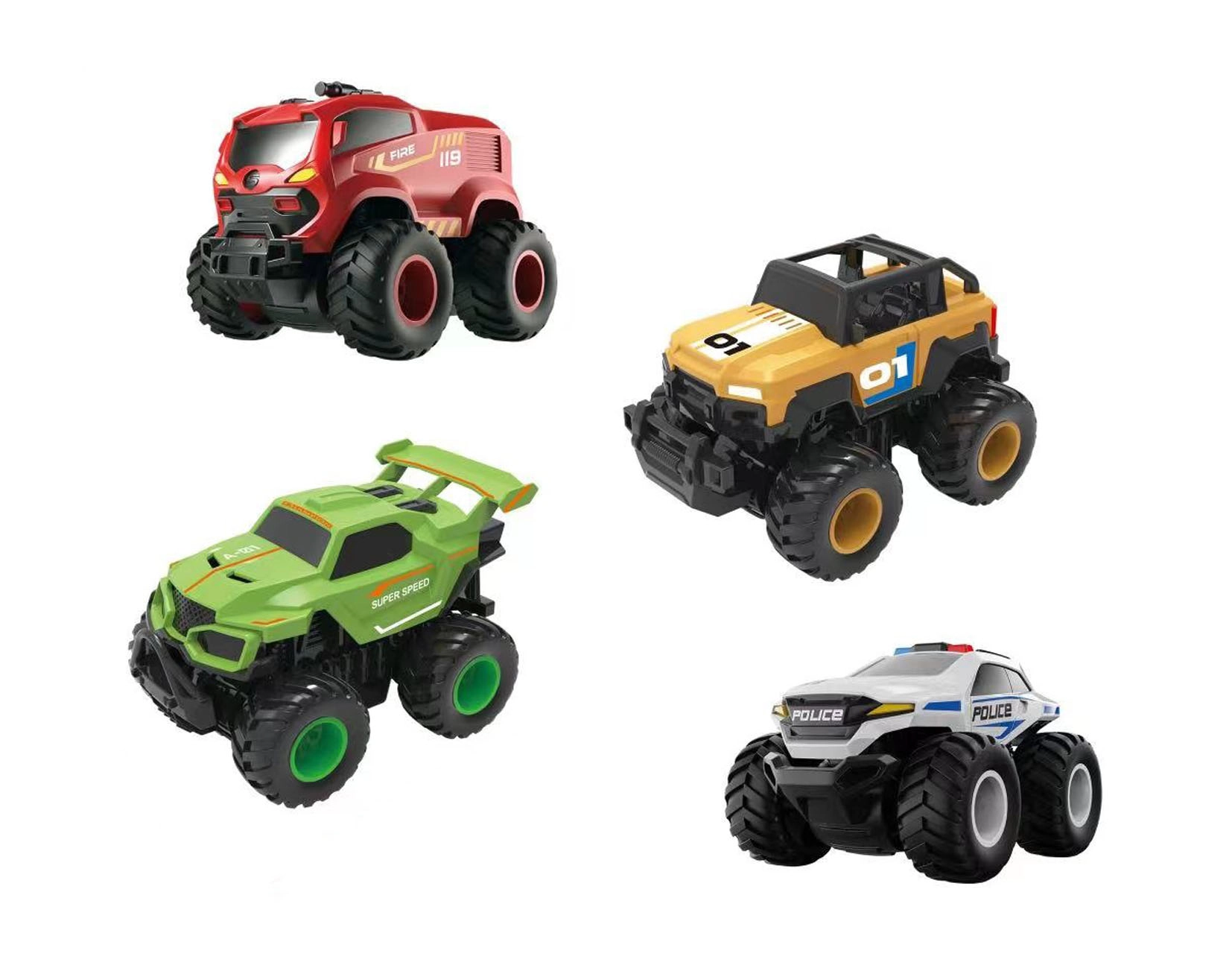 Отправете се на приключение с колата Big Foot с размер 13 см. Този модел с инерционно задвижване се предлага в четири варианта: пожарна, полиция, зелено и жълто.